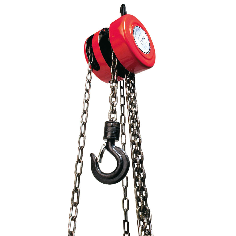 Le palan manuel contient 3 mètres de chaîne et un crochet orientable avec sécurité.