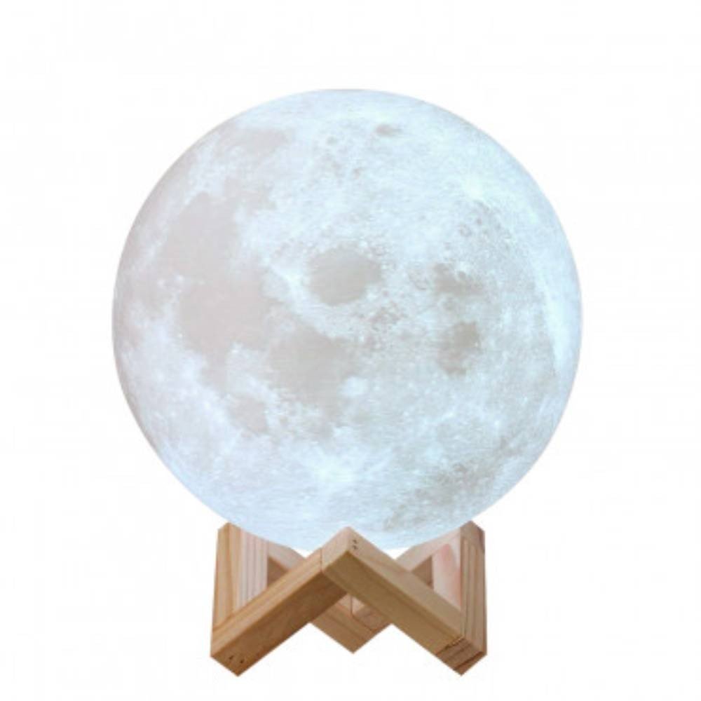Reproduction parfaite de la Lune, cette lampe  sera idéale en veilleuse ou simplement pour  décorer votre intérieur. S’éclaire simplement en la  touchant, sa lumière blanc froid ou blanc chaud  vous donnera l’illusion d’avoir la Lune à portée de  main. Grâce à son support effet bois et discret,  une fois dans l’obscurité, la lampe donne une  impression d’être en apesanteur. Aucun danger,  cette lampe ne chauffe pas et peut donc être  prise en main même éclairée.