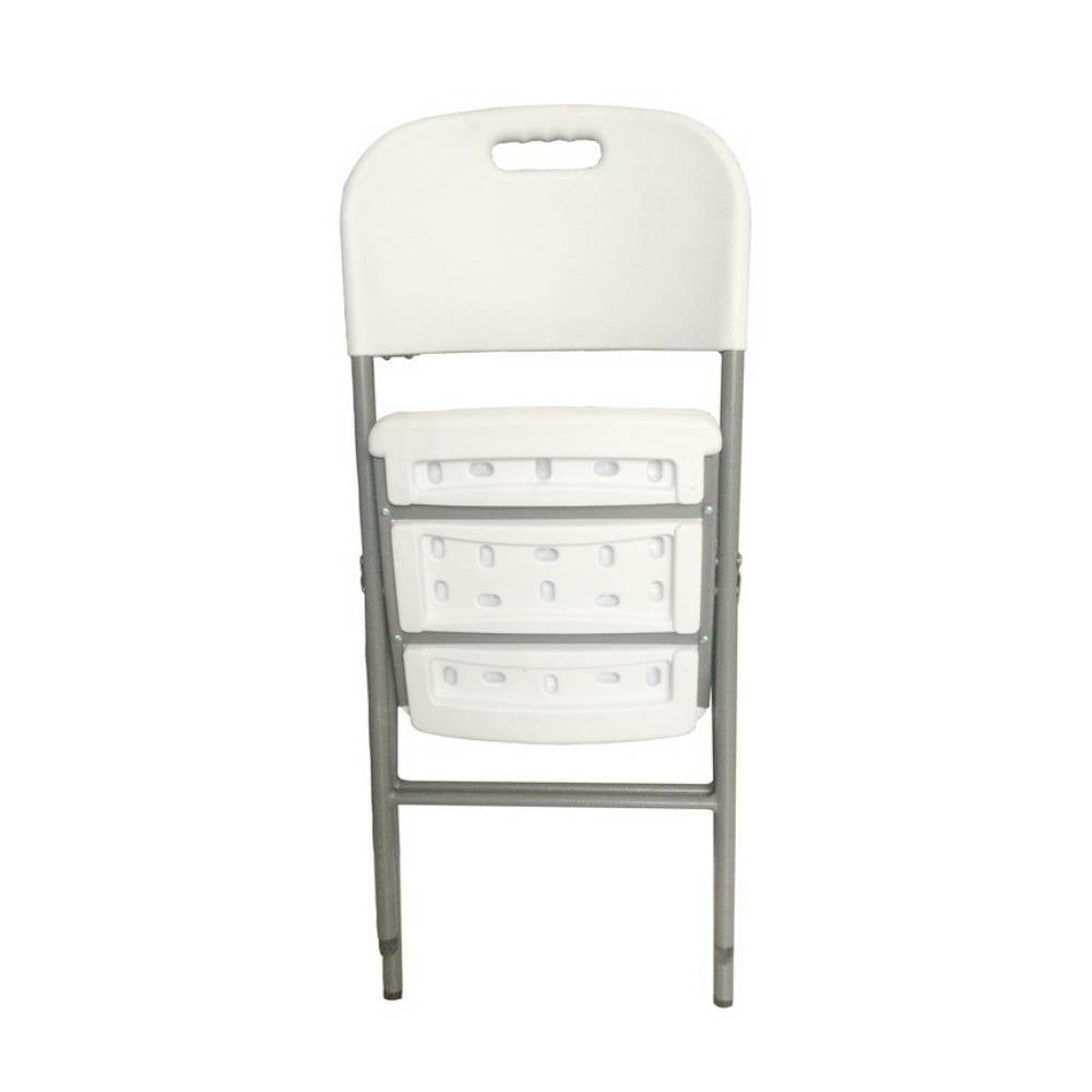 Détails matière : dossier et assise en plastique blanc (HDPE 45mm) et armature en métal.