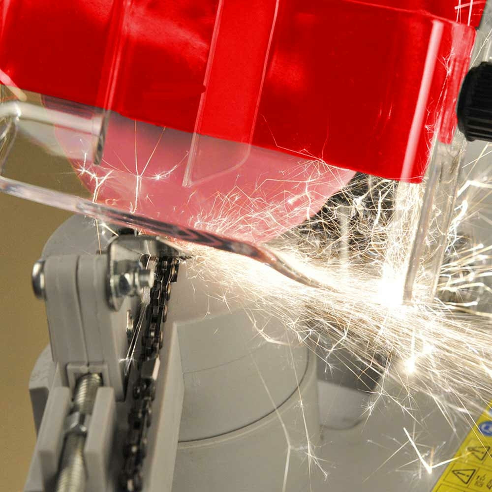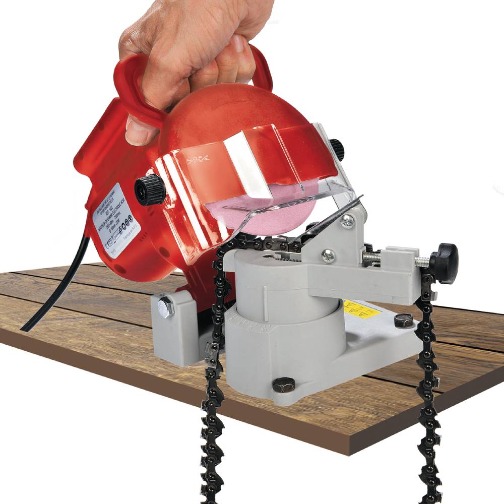 Affûteuse électrique livrée avec meule, pour scies à chaînes.