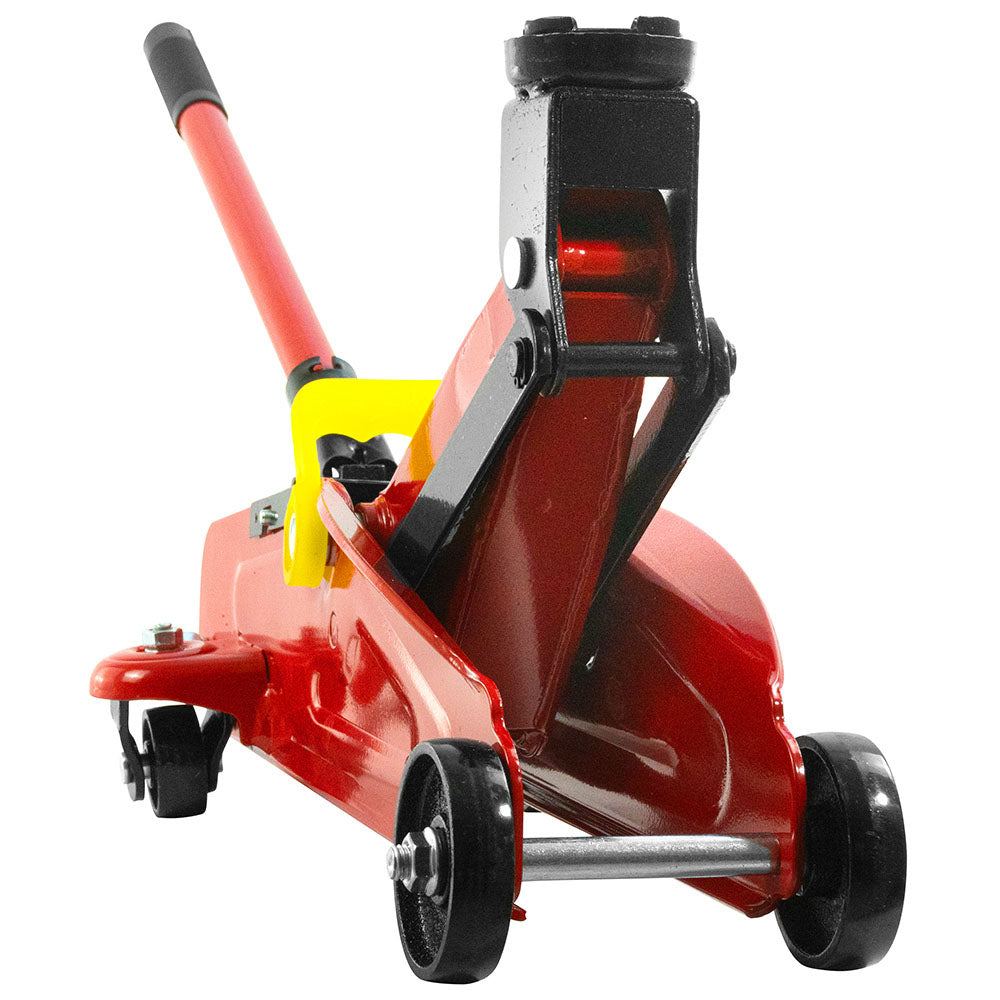 Cric hydraulique 2 tonnes avec levée rapide et tête rotative, idéal pour lever en toute sécurité voitures, SUV et utilitaires légers. Compact, robuste et équipé de 4 roues pivotantes pour un positionnement précis.