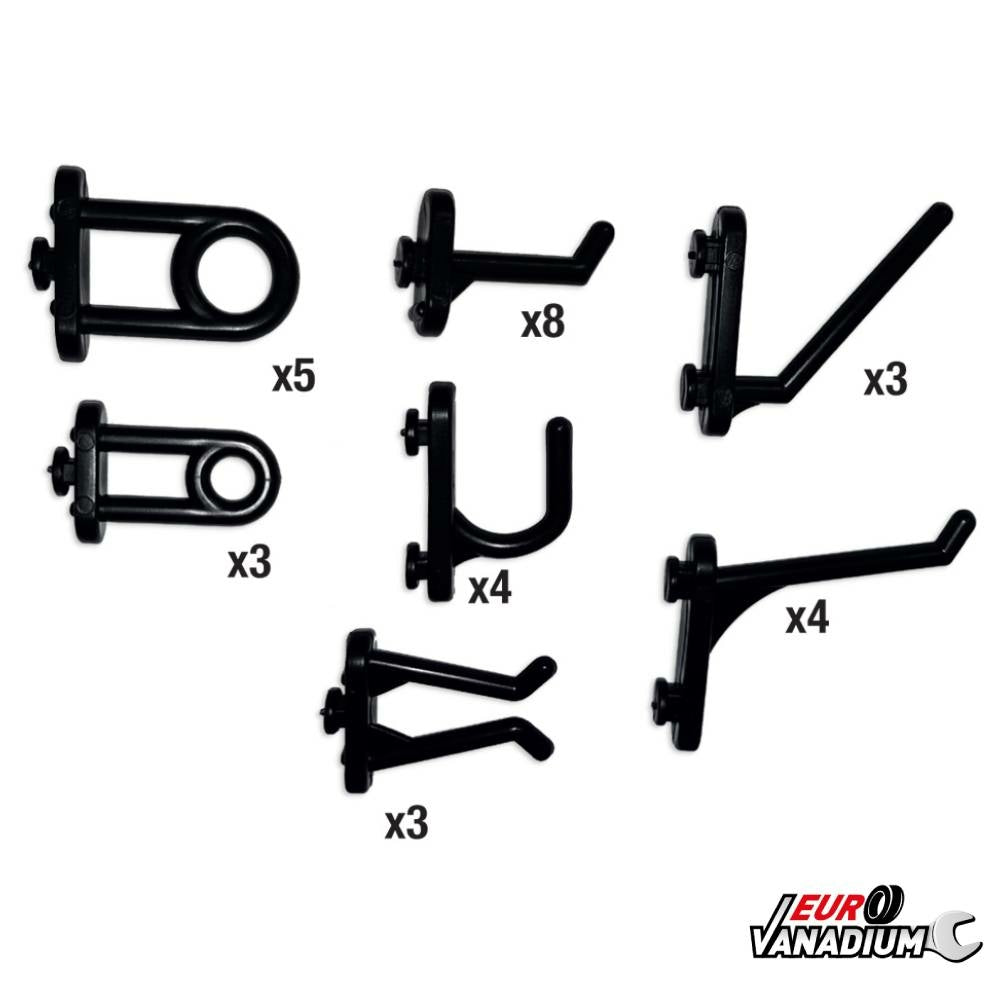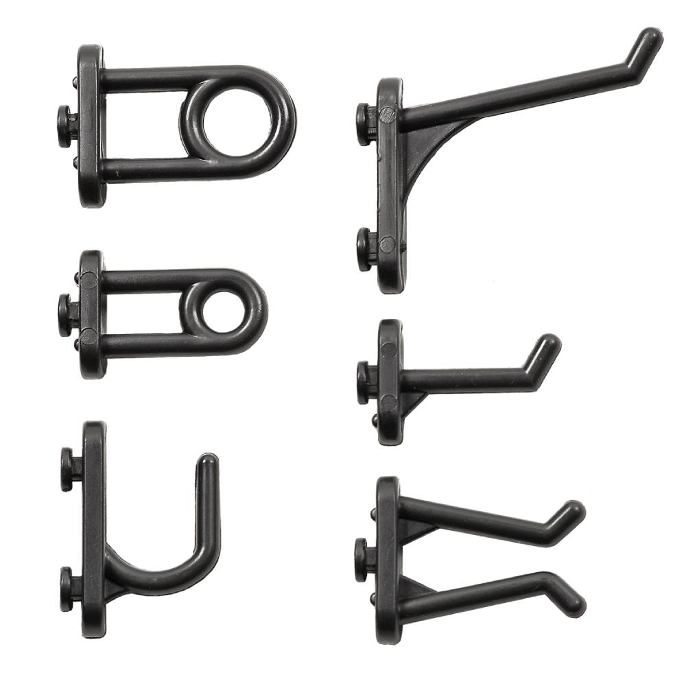 Ces crochets astucieux vous permettent de compléter vos panneaux muraux de rangement.