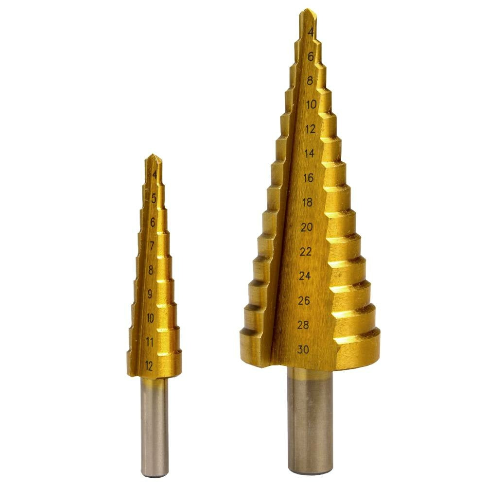 Ce lot de 2 forets coniques étagés vous permet de percer des trous de 4 à 30 mm de diamètre avec un seul outil.